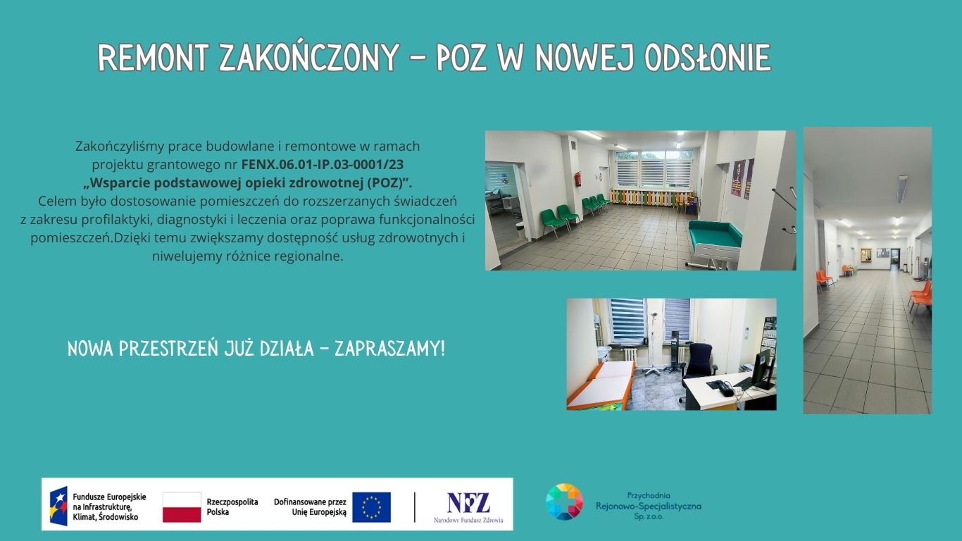 Zmieniamy się dla Państwa robiąc krok ku nowoczesności! Całość środków przeznaczona zostanie na zwiększenie dostępności i komfortu udzielania świadczeń oraz poszerzenie diagnostyki.